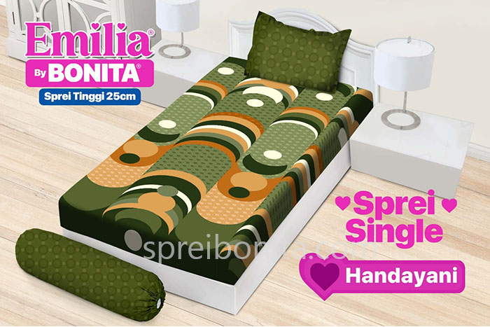 Design motif terbaru yang membawa nuansa minimalist dan berkonsep warna hijau mempesona dari Sprei Bonita Emilia Single Handayani ini siap bikin kamar tidur Anda menjadi lebih bagus kembali.