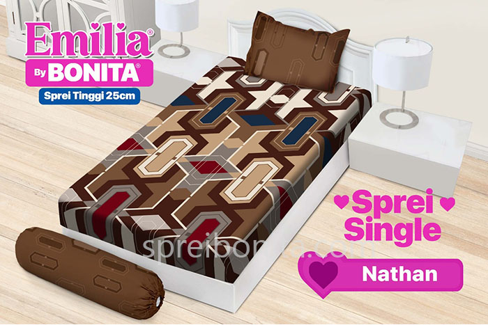 Motif minimalist yang cakep dengan warna coklat soft yang aesthetic dari Sprei Bonita Emilia Single Nathan ini bakal siap mempercantik ruang tidur kamar tamu Anda.