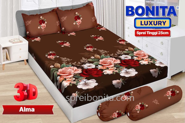 Design motif bunga mawar yang cantik serta elok menawan parasnya dari Sprei Bonita Luxury Alma Tinggi 25 cm rekomended sekali buat dipakai untuk hadiah pernikahan kepada keluarga dekat.
