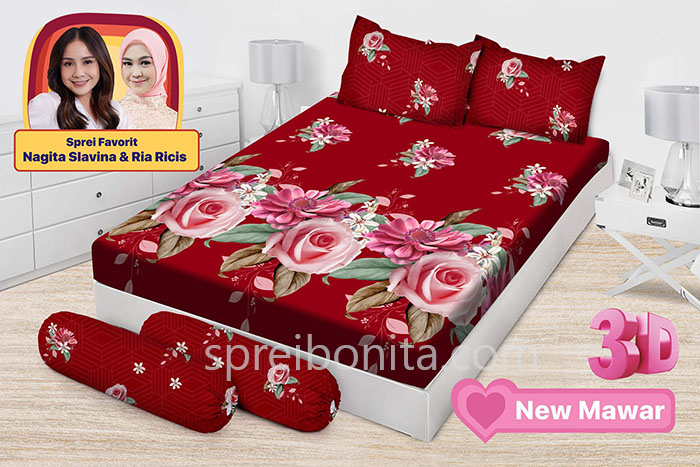 Corak motif bunga mawar yang besar dan mencolok dari Sprei Emilia New Mawar Tinggi 25 cm rekomended untuk dipakai buat hadiah atau souvenir acara Anda.